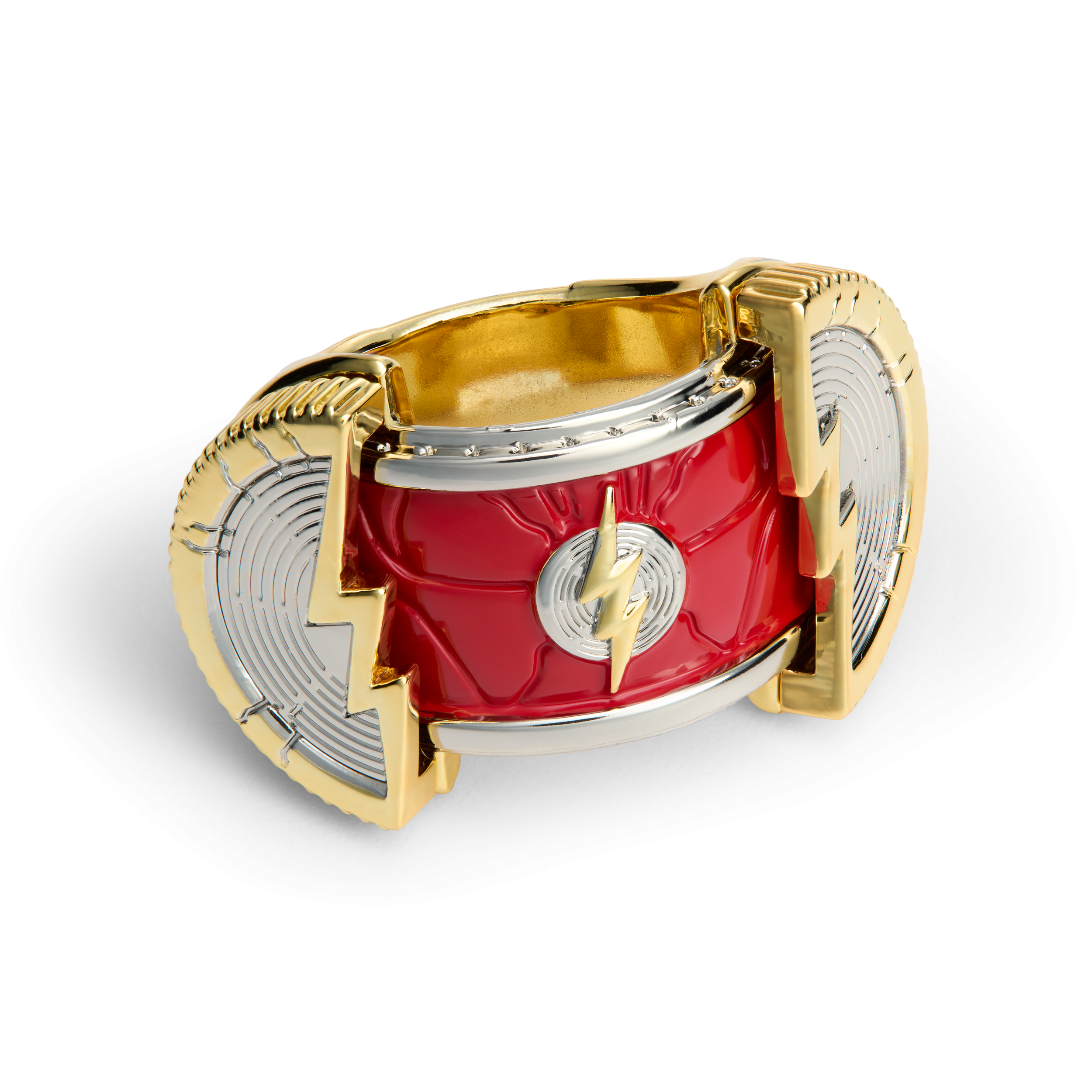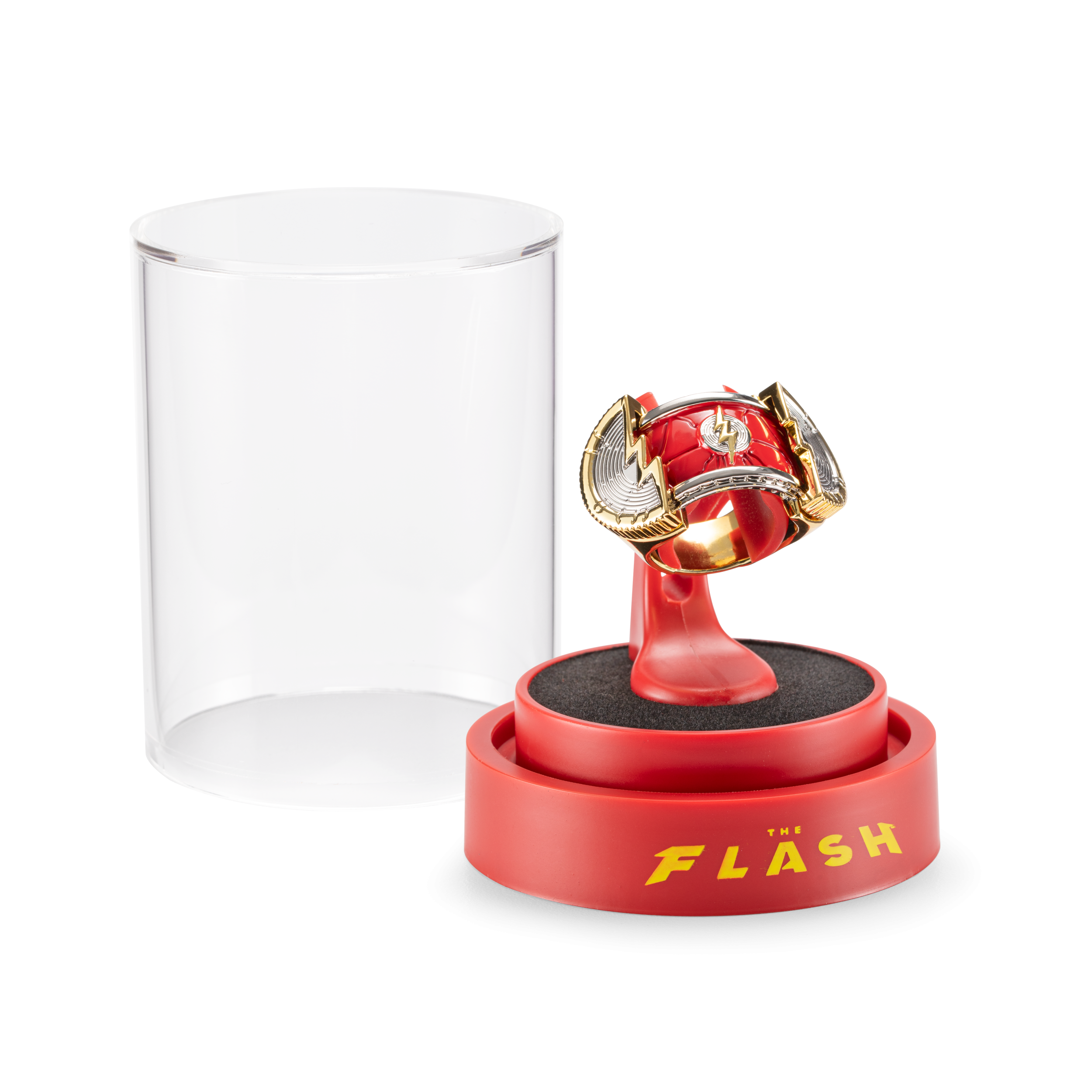 Channel your inner speedster with this authentic prop replica of Barry Allen’s ring from DC’s The Flash (2023), complete with display case measuring approx. 3.7in (9.5cm) tall.